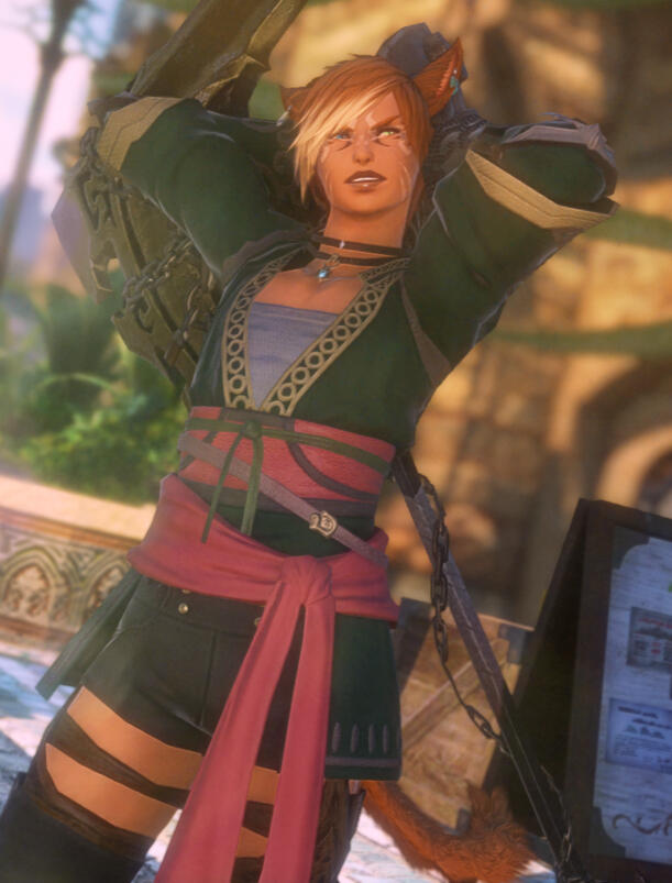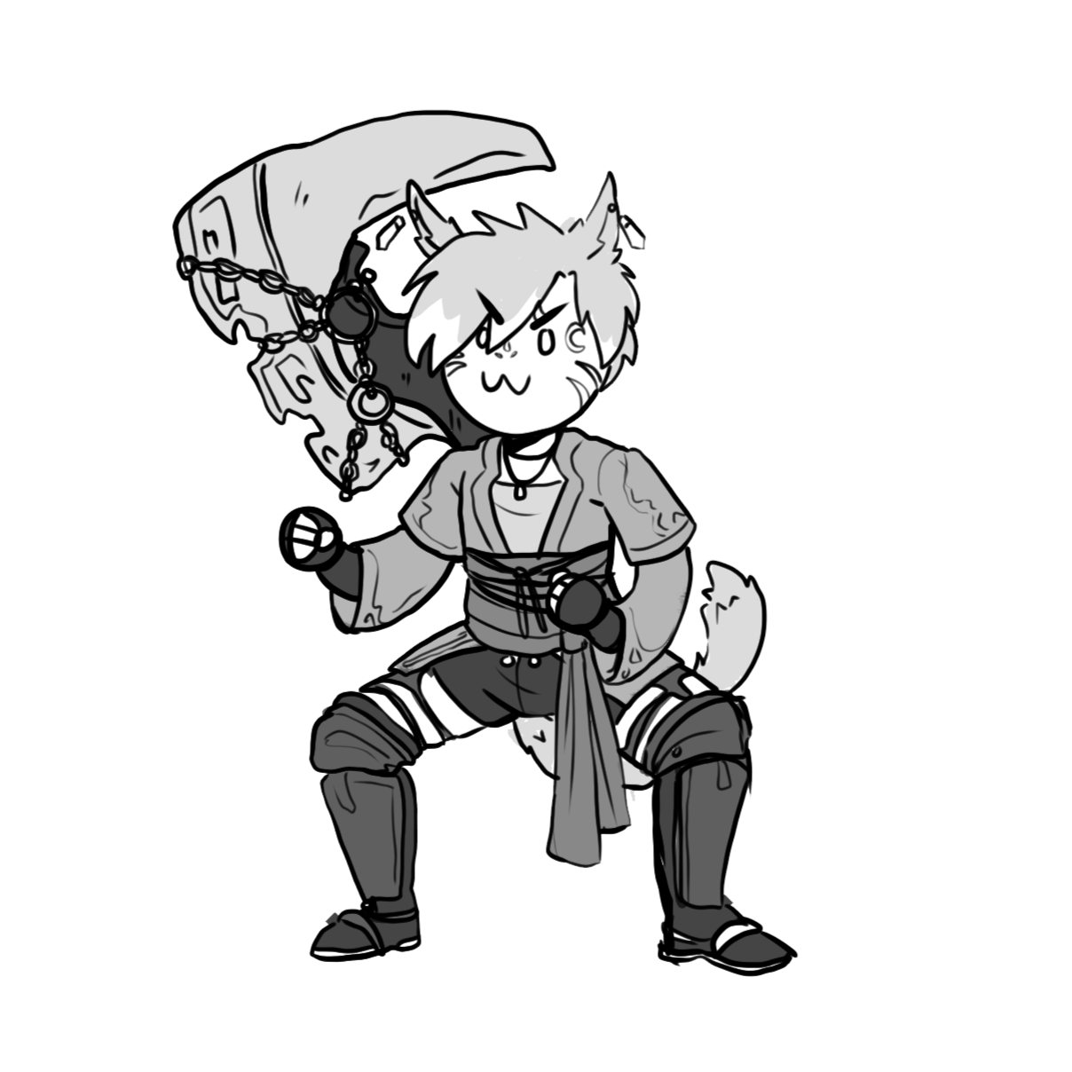 Born and raised in Ala Mhigo, X'rahji struggled for most of his childhood and teen years. His father died in a mine collapse when he was very young, leaving him and his mother without a means to get by. Thankfully they were taken in on a farm where his mother worked tirelessly and was paid in nothing except the roof over their heads and a meal every day. It was all the owners could afford unfortunately.He earned his keep when he was old enough, joining his mother on the field along with other tasks around the farm. His favorite being chopping wood with his very own axe, which the owners had given him when he was but 10 years old.All his life he had yearned for freedom, freedom from the imposing shadow of the Garlean Empire. His mother, though scared of him openly speaking of rebellion, listened to him on the many nights he cried and mourned the life they could never live. Or so he thought. At around 16 he came into contact with a group of defectors and soon was informed of a secure escape plan they were planning to go through with. Together with his mother they attempted to flee from the place they called home.The circumstances of his escape from that point on are a bit of a mystery. He doesn't talk about them and tries to forget the night all together. If him living alone in Ul'dah is any indication, things probably didn't go as planned.He was a refugee for a couple years, living outside the gates to Ul'dah, earning a living by chopping fire wood and other forms of labor. It was no secret that the city's more scummy citizen enjoyed walking about the tents that lined the walls and harassing those who lived there. Two such individuals came upon X'rahji one night and decided he would be an easy target. A mistake that would cost them. In an act of self-defense, and maybe a bit of rage, he beat the two men to within an inch of their lives. For this, he was thrown into a cell, his word against the "respected" citizens.As it would happen, the offenders were members of the Gladiator's Guild, and upon hearing of the circumstances the Guild Master decided to speak with X'rahji. When he told his side of the story the Guild Master was disgusted, kicking the men from the guild and offering X'rahji a sum of money for the trouble. He, however, asked for something different. Having seen the many brawls upon the sands outside the gates, he asked to work at the Coliseum in Ul'dah. Not only was he given his wish, but also a home within the walls, where he now resides and spends his days either working or sitting about Pearl Lane.