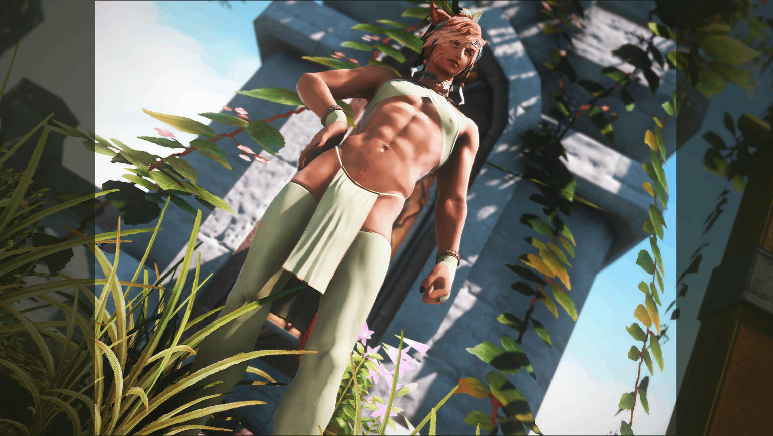 ⚜️ Name: X'rahj Jakuya (She-Rah-Ji)⚜️ Age: 22⚜️ Height: 5'0"⚜️ Gender: Male (He/Him)⚜️ Sexuality: Bisexual (Male preference) and Polyamorous⚜️ Class/Job: Warrior, Coliseum Worker/Fighter⚜️ Place of Origin: Ala Mhigo⚜️ Place of Residence: U'ldah⚜️ Noticeable Features: Heterochromatic eyes (Right is light blue, left is bright green) and scars all over his fingers.